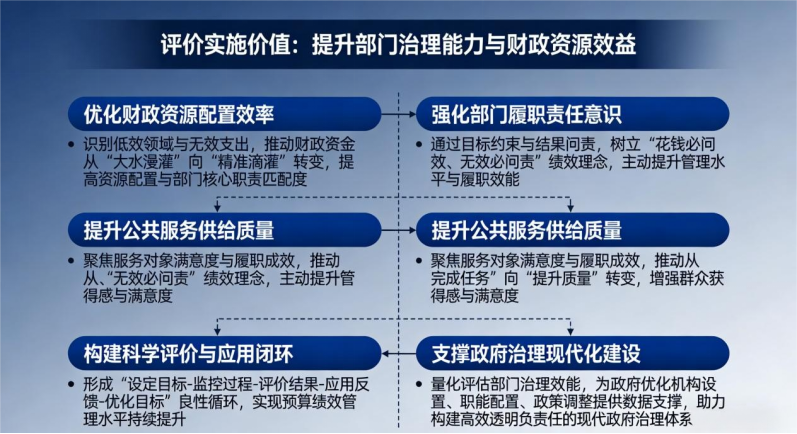 通过系统化、规范化的部门整体预算绩效评价,为财政部门与预算部门带来多重价值: