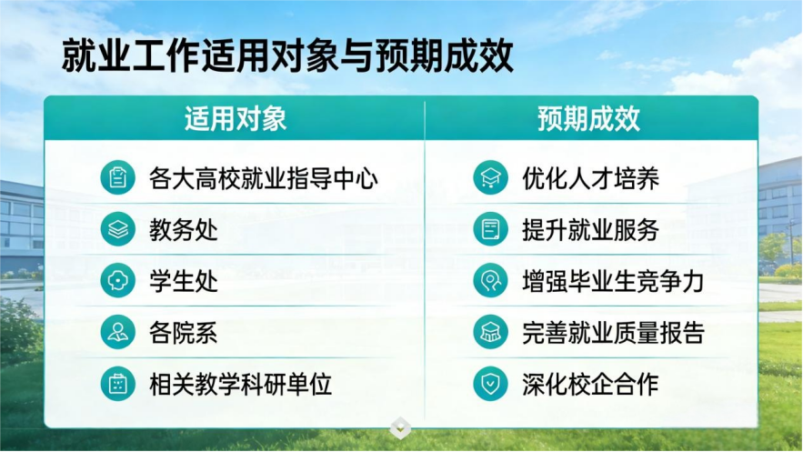 4. 优化就业质量报告:为高校年度就业质量报告编制提供真实详尽的一手数据,使报告更具客观性与可信度。